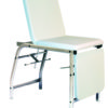 Il piano superiore posizionato su una solida struttura perimetrale è rivestito in tessuto spalmato (simil pelle/skai) lavabile ignifugo classe 1 IM. L’imbottitura è ad alta densità. I cuscini sono reclinabili per mezzo di un sistema meccanico a frizione. I cosciali in schiuma espansa sono orientabili in tutte le direzioni. Il lettino è dotato di un contenitore a forma circolare in acciaio inox richiudibile sotto la seduta. Per una maggior stabilità la struttura è provvista di piedini regolabili. Prodotto confortevole assemblaggio semplice e intuitivo.